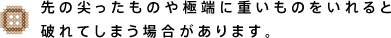 “薄手の平織り綿(シーチング)”を使用しています。 この生地は、布目が詰まっていないので、 素朴で柔らかい手触りです。 そのため、極端に重いものや、角のあるもの、 先端の尖ったものを入れると、 生地や縫い目が弱くなって、 破れてしまうことも考えられます。 大切なプレゼントを入れるときは、 ご自身でお確かめの上、 気を付けてお使いくださいね。 「ほぼ日のギフトパッケージ」は、