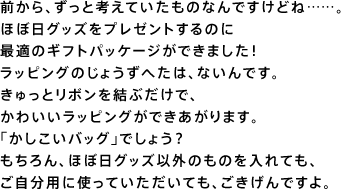 | 〈「ほぼ日のギフトパッケージ」の仕様〉 |