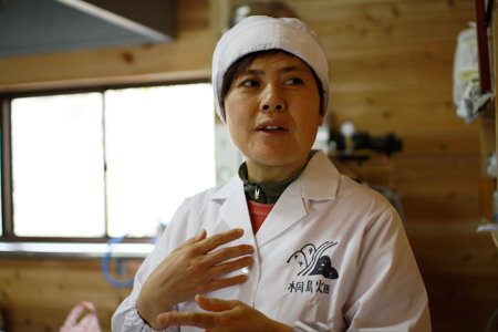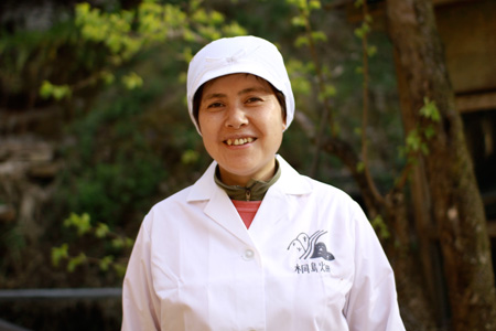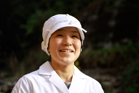 | 石川朱美さん 美郷さんも一目置く、 しょうがシロップづくりの、リーダー的存在。 細かなレシピの調整から、作業上の様々な工夫まで どんどんアイディアを出し、 率先して作業をすすめる頼もしい人です。 |