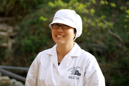 ![]() 桐島美根穂さん 桐島正一さんのお母さん。 現場ではいつも静かに、やさしいまなざしで、 もくもくと仕事をされています。 取材に行った「ほぼ日」に、 おいしいおいしい「酢そうめん」を作ってくださいました! |