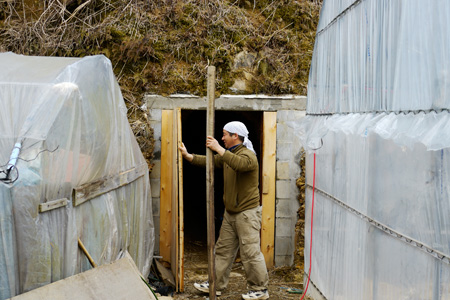 | 正一さん | ずっとしょうがをつくりたかったんです。 でも、保存方法が難しいんですよ。 「壺(つぼ)」がないと保存ができないので。 「壺」っていうのは、 しょうがを貯蔵しておく、 自然の冷蔵庫のようなものです。 その「壺」を借りることができたのが、 7年前だったんですよね。 だから最初の3年は「壺」を借りていました。 ただし、ここからだと遠いので、 自分の場所に「壺」をつくることにしたんです。 |