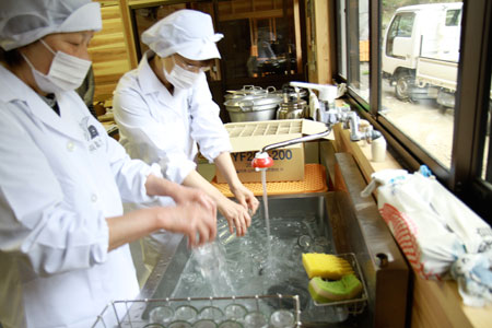 煮込んでいるあいだに、ビンを洗浄します。 |