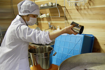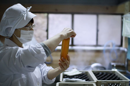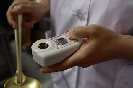 糖度をチェックしながら。 |