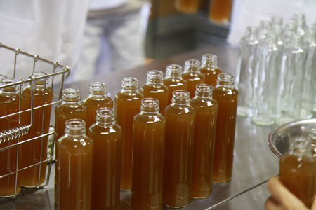 洗浄しておいたビンに詰めます。 |