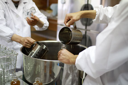 1ビンずつ、検品しながら。 |