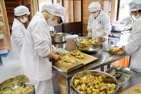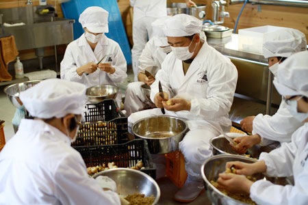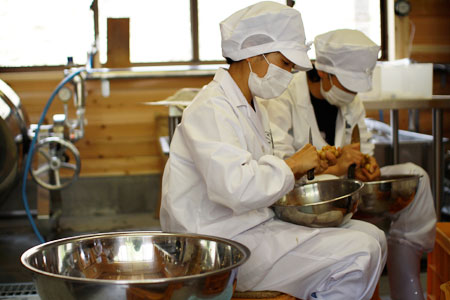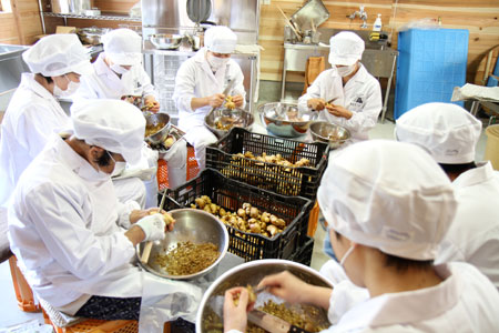 みんなでもくもくと、ひたすらむき続けます。 |