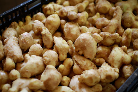 手かげんなしで、 しょうがたちはきれいに皮をむかれました。 |