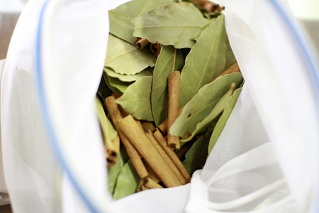 ベイリーフ、シナモン、クローブ、カルダモン。 |