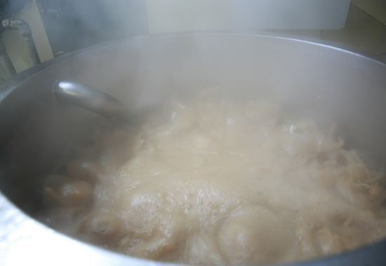 ▲大きな釜で大胆に、繊細に、シロップはつくられます。