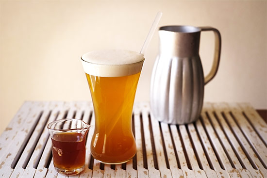 ほのかに甘い、しょうがシロップのビール割りです。