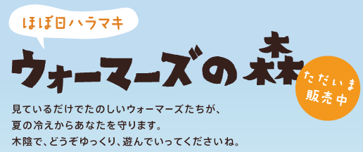 ■ウォーマーズの森の販売に関して  〈販売方法〉	 ご注文いただいたアイテムを すべてご用意するための受注販売になります。  〈販売期間〉 2009年4月21日(火)午前11時から 2009年5月13日(水)午前11時まで  〈出荷時期〉	 7月初旬〜中旬 		 〈価格〉 ■ハラマキ 価格:F/S/XS 3,400円   子供 3,000円   S+10cm 3,700円   F+10cm 3,900円  ■レッグウォーマー	 価格:3,400円 (すべて消費税込・配送手数料別)