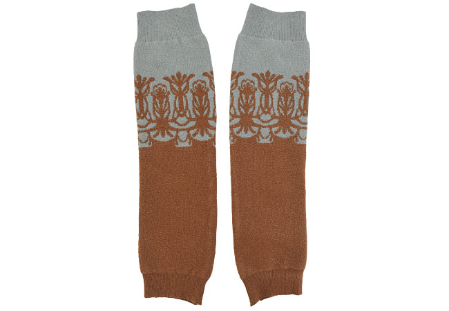 プランツ(レッグウォーマー)  切り紙らしい連なった模様は、 植物をイメージしています。 洋服とコーディネートしやすいと思います。 落ち着いた色合いなので、 男性が履いても、かっこよさそうです。 切り紙は、切り紙作家・矢口加奈子さんに 作っていただきました。