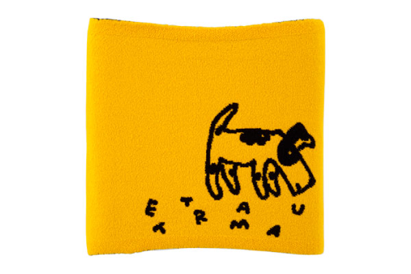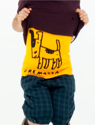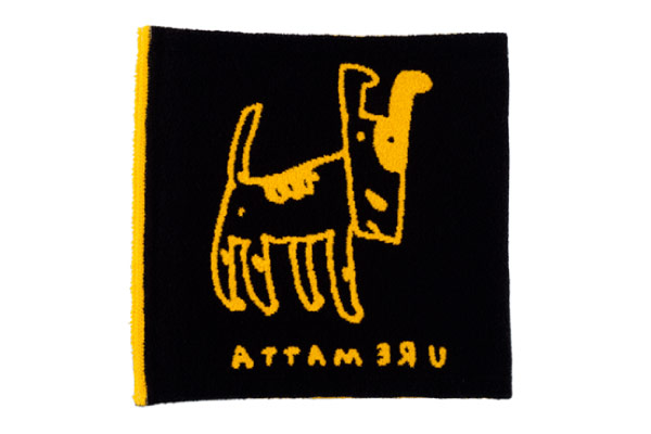 【秋の新作!】 ウレマッタの犬  絵本作家・高畠純さんが、 秋のウレマッタのために 新しい絵を描きおろしてくださいました。 ご覧のように、犬のハラマキです。 オレンジがかった元気なイエローに、 かわいらしい犬が一匹。 ウレマッタ島のマスコット的な存在でしょうか。 様々な方に、かわいらしく巻いていただけそうです。