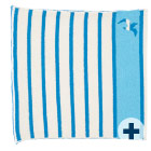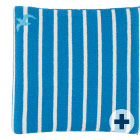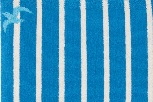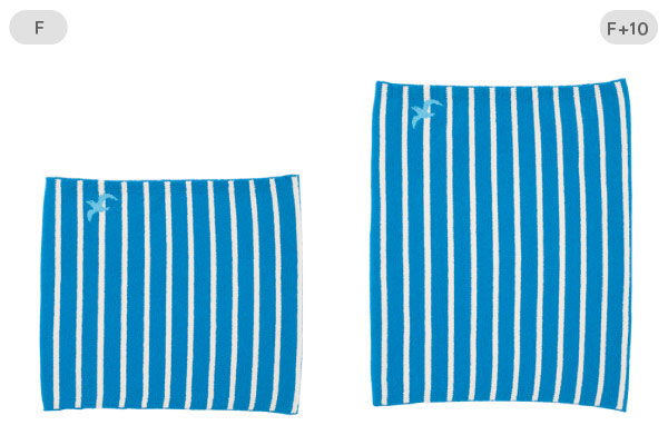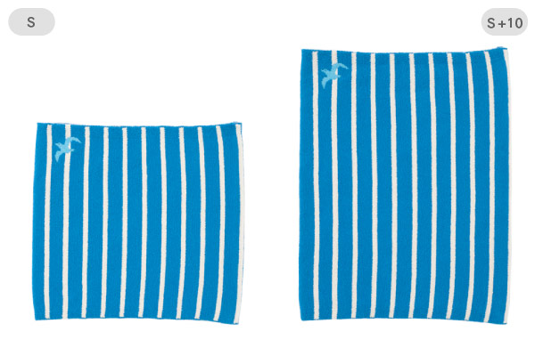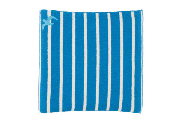 【秋の新色!】 ブルーのパラソルストライプ  秋のウレマッタに新登場した、 ブルーがきれいなストライプ柄。 元気な青に白いストライプは、 爽快な気分で一年中巻いていただけます。