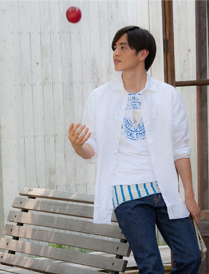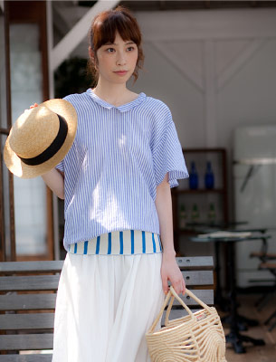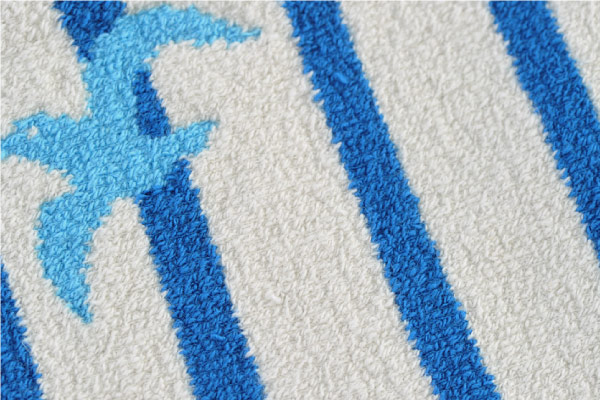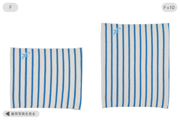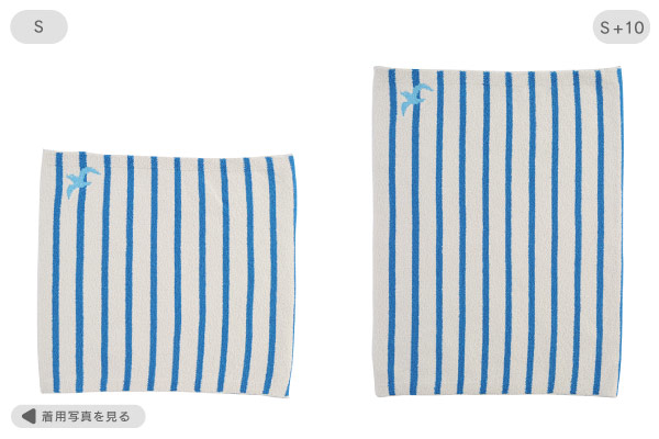 パラソルストライプ  軽快なブルーと白のストライプは、 ウレマッタの砂浜に立ててある ビーチパラソルです。 カモメのワンポイントがアクセントに。 男性へのプレゼントにも、どうぞ。