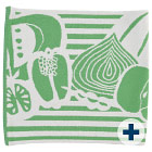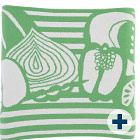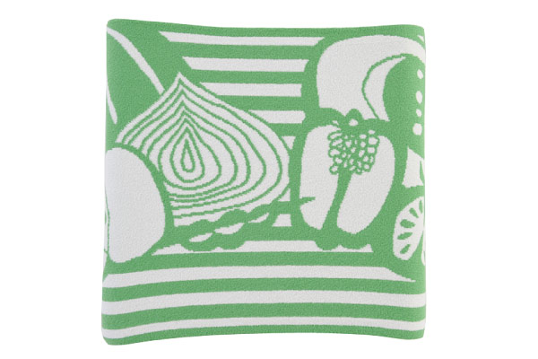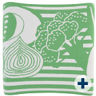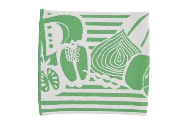 とれたて野菜  ウレマッタの風物詩、 水曜の朝市をイメージしました。 若々しい緑のボーダー柄と、 とれたて野菜の組み合わせが、 夏らしくてさわやかなイメージ。 うすいタオリン素材を使っていますので、 これからの季節にぴったりの一枚です。