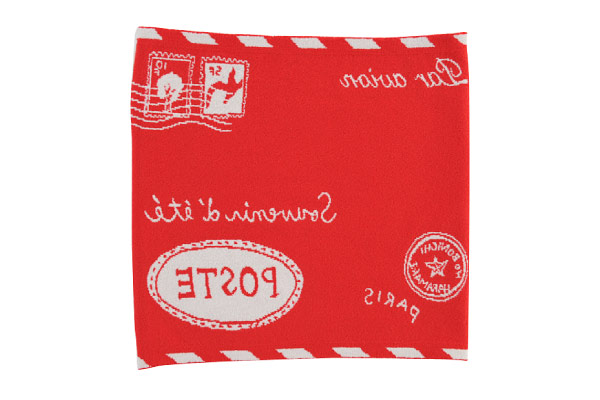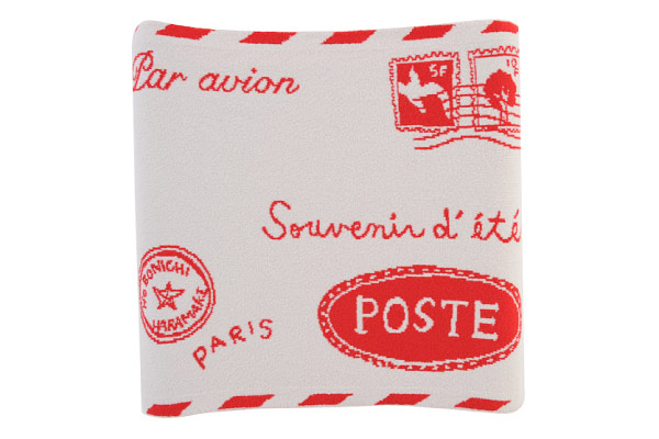 パリからの手紙  表面は、エアメール。 裏面は、自転車に乗るポストマン。 1枚で2つのデザインをたのしめるのも、 このハラマキのかくれた魅力です。 うすいタオリン素材でできていますので、 洋服の下に巻いていても、着ぶくれしづらいです。 いろんな表情をおたのしみくださいね。