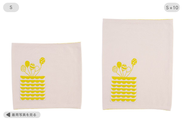 遊園地のフウセン  なにかと便利なポケット付き。 ポケットには、カイロを入れたり、 おまもりを入れたり、活用してくださいね。 じつは、このポケットには ちょっとたのしい仕掛けがあります。 中をのぞくと、フウセンのひもに むすばれたプレゼントが。 淡い色合いで、うすいタオリン素材なので、 白いシャツにも、透けづらいと思います。