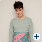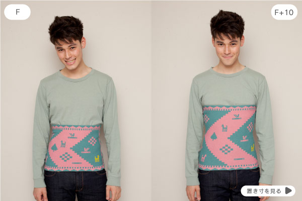 キリムチックな トルコの伝統工芸、 「キリム」をモチーフにしたハラマキです。 キリムとは、遊牧民族が移動するときに 折りたたんで運べるようにつくった織物のこと。 染め方、紡ぎ方、織り方は 母から娘へ代々受け継がれるものだったそうです。 山脈のふもとで暮らす遊牧民が、 毎日目にする風景が描かれていますね。 キリムの特徴である、中間色もキレイに表現されました。 冬のお洋服のスソから、 差し色に「見せハラ」をしたら、きっとすてきですよ。