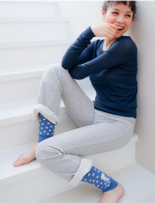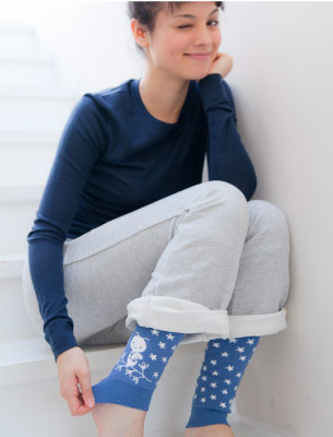 バジーと星(レッグウォーマー) 星柄がかわいらしい、レッグウォーマーです。 下のほうには山田詩子さんの オリジナルキャラクター、「ハチのバジー」が。 手描きの風合いもしっかり出ています。 ブーツの下に履いて、少し見せてもかわいいですよ。 ハラマキ、けいとのぱんつとおそろいでつけると、 全身バジーちゃんにつつまれて、 絵本の中にいる気分になれそうです。