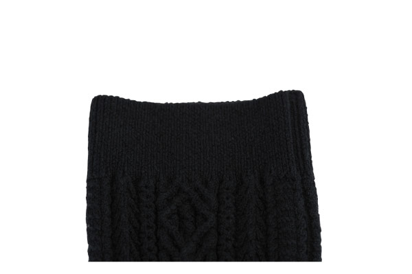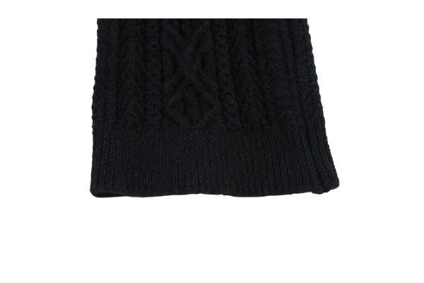 フィッシャーマンズ(レッグウォーマー) アイルランドのアラン諸島に伝わる アラン模様のレッグウォーマーです。 アラン模様とは、様々な祈りを込めて編まれる模様のこと。 漁に出る夫の豊漁・安全を祈って編まれる フィッシャーマンズセーターが有名ですよね。 このレッグウォーマーの模様には、 長生き、丈夫な子孫、成功、富、財宝への 祈りが込められています。 黒い色なので、オフィスなどでも使いやすそう。