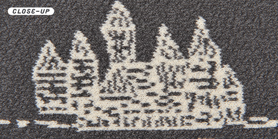 「絵画」と呼びたくなるほどにこまかい、 緻密な原画をもとに編まれた、ハラマキ。 とってもすてきなものになりました。 けいとのぱんつ、レッグウォーマーとおそろいで 使っていただけます。 裏返しに巻いてもかっこいいように、 内側の縫い目にもひびのさんのこだわりが入っています。 ひびのさんと糸井重里の対談も、 ぜひお読みください。