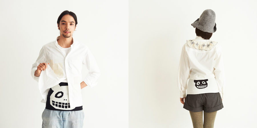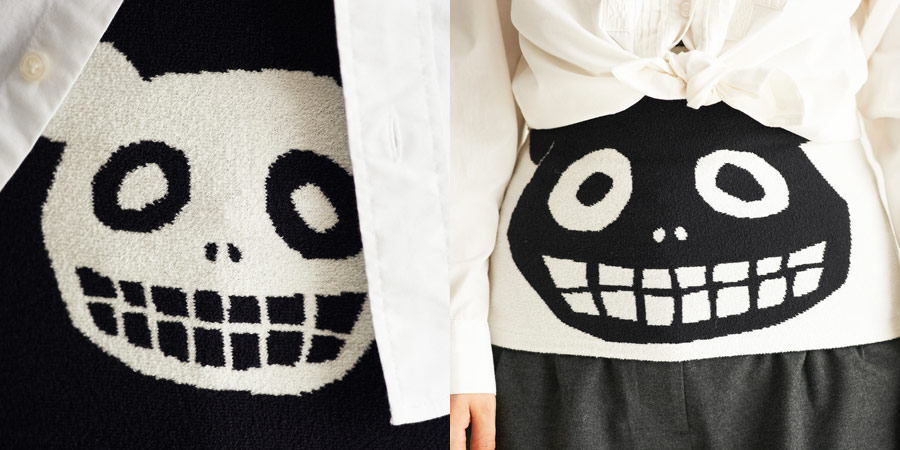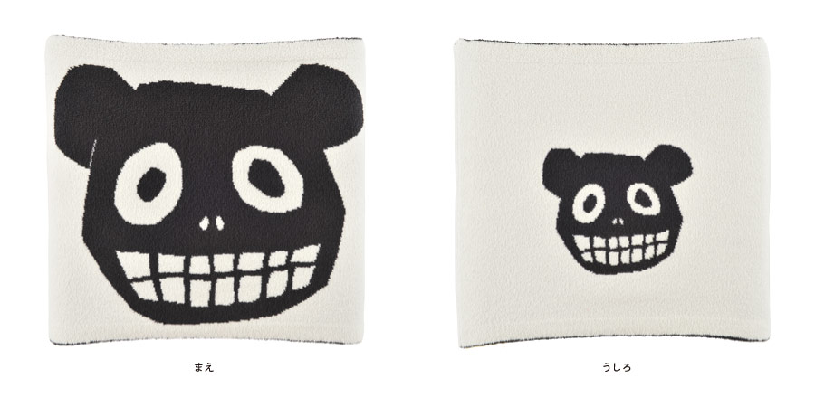 全面に広がったパンダのドクロ。 ロックな雰囲気に、ちょっぴりびっくりしますが、 よく見ると愛嬌があってかわいいです。 おなかをしっかりと守ってくれそう。 裏返しに巻くと雰囲気が変わって、 それもまたかっこいいですよ。 ちびっ子たちにも似合いそう。 けいとのぱんつ、レッグウォーマーと おそろいで身につけたくなります。