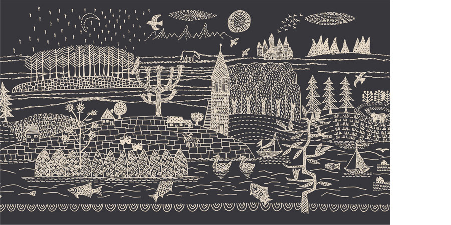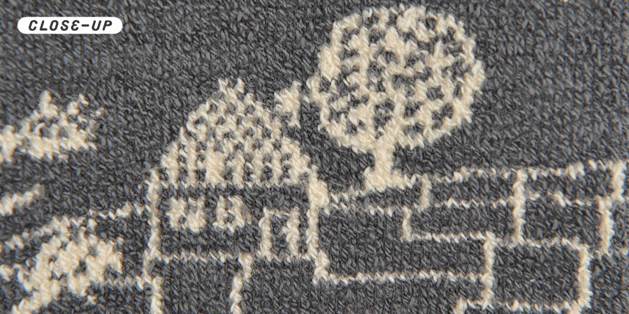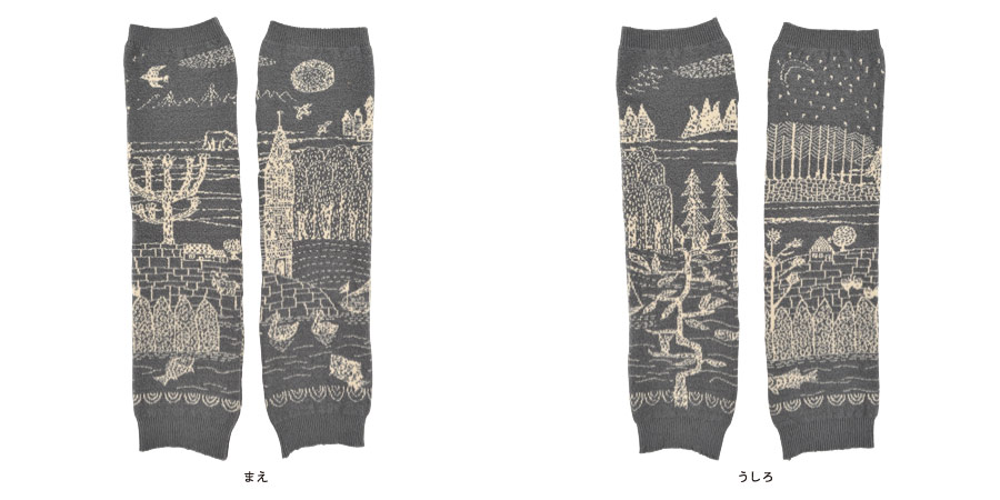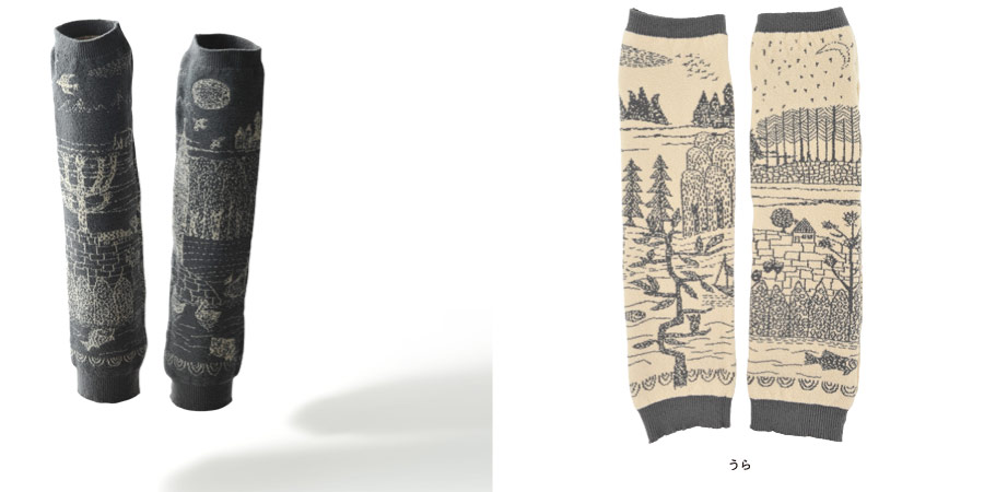 細かい絵柄が、レッグウォーマーにも。 裏返して履くと、またちがった印象になって かっこいいです。 ハラマキ、けいとのぱんつと、 おそろいで使いたくなりますね。