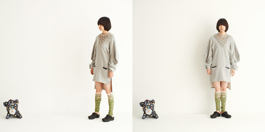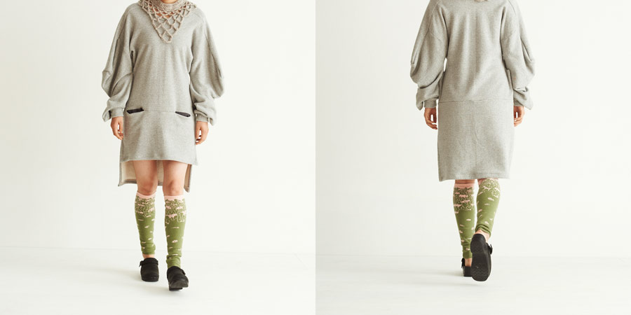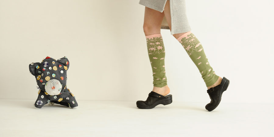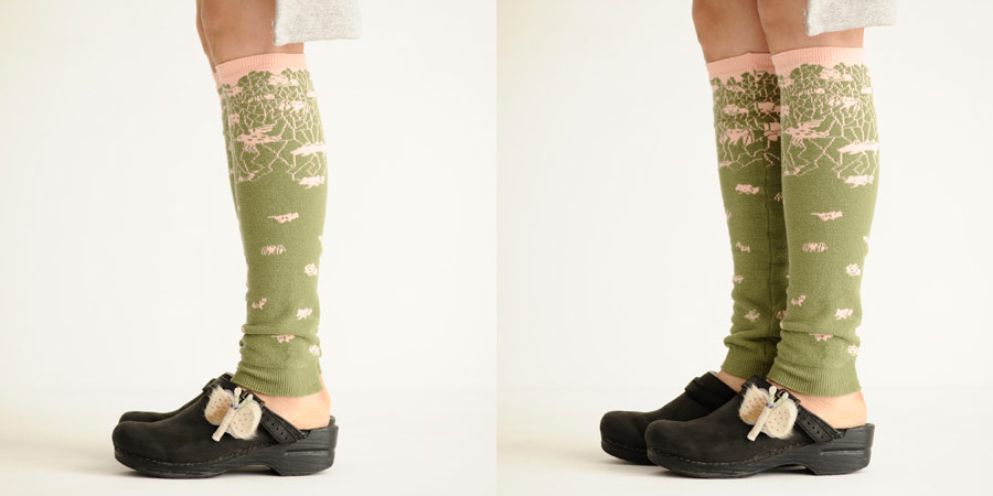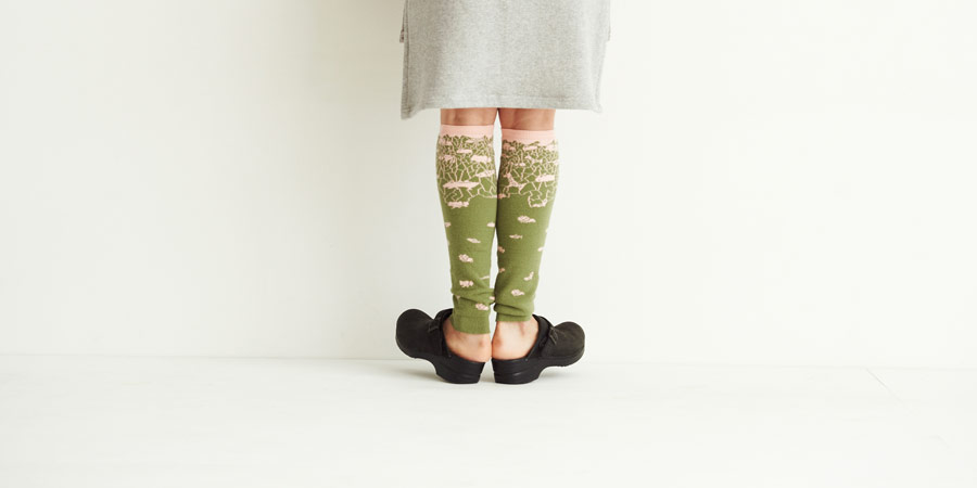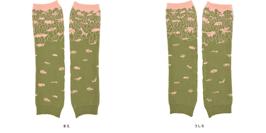 細かい絵柄が、レッグウォーマーにも。 裏返して履くと、またちがった印象になって かっこいいです。 ハラマキ、けいとのぱんつと、 おそろいで使いたくなりますね。