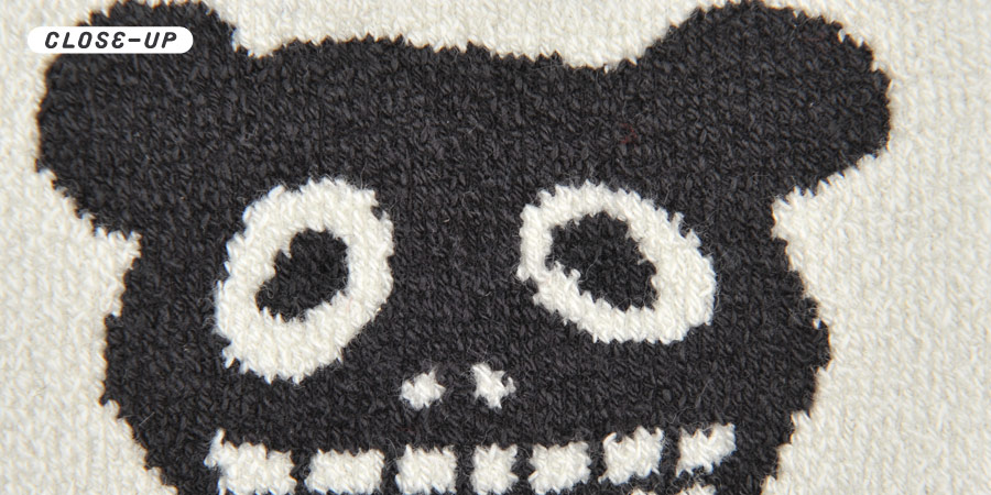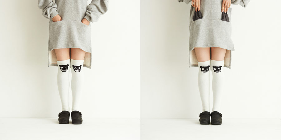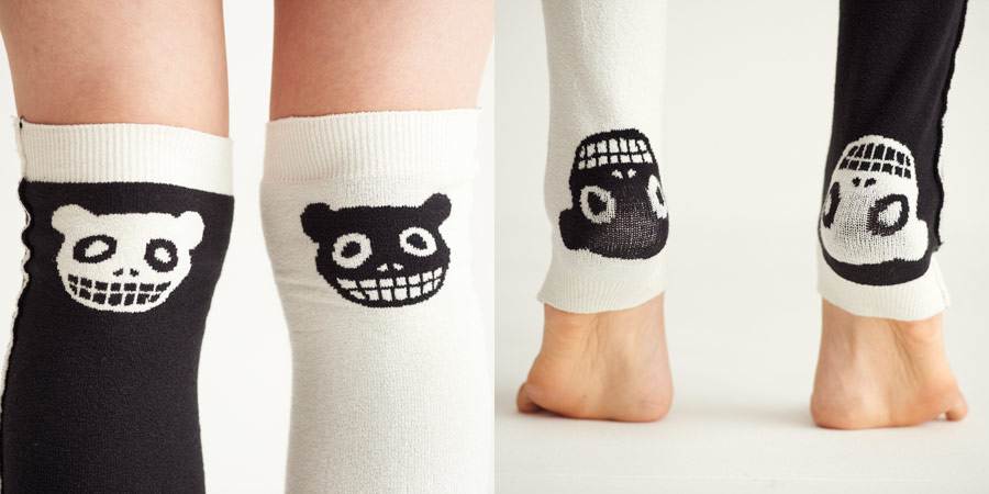 少し丈の長いレッグウォーマー。 履くと、膝とかかとに、絵柄が入ります。 裏返しに履いてもかっこいいですよ。 ハラマキ、けいとのぱんつとおそろいで 使ってみませんか?