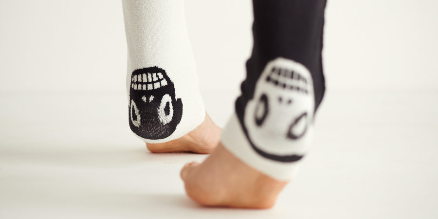 履くと、膝とかかとに、絵柄が入ります。