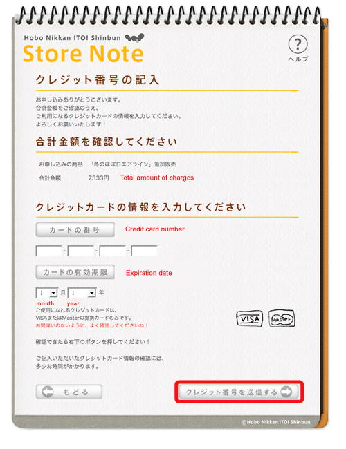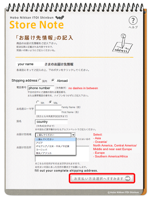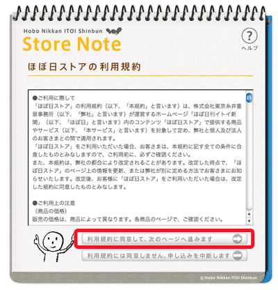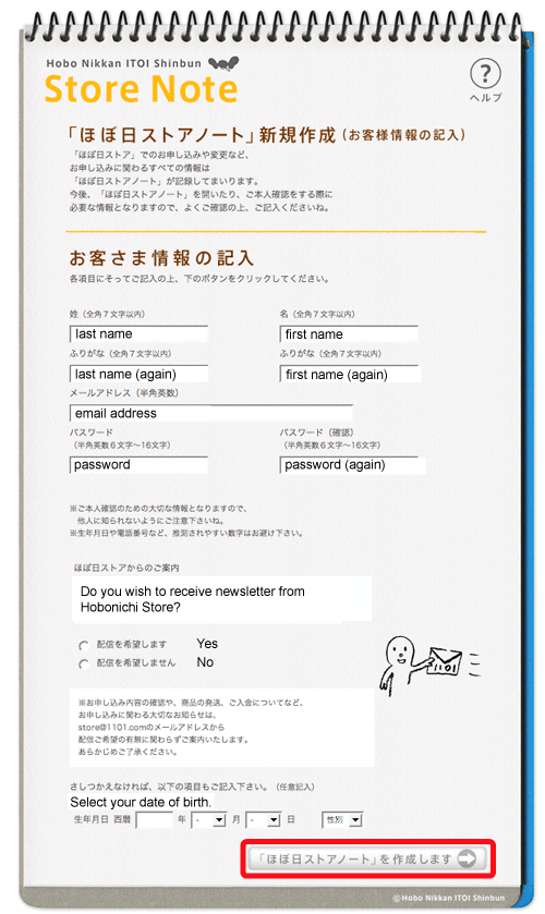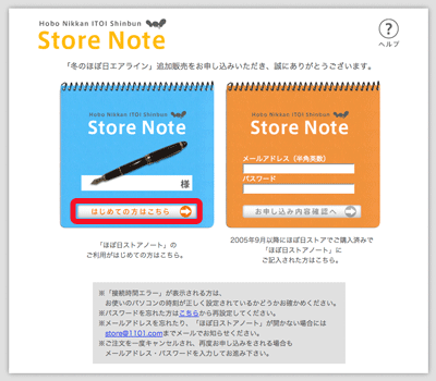 | 4. If you are a new customer, please click the button marked in red to create an accout for "Hobonichi Store Note". |