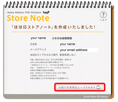 4. Please enter your email address and password in the area marked in red to open "Hobonichi Store Note". |