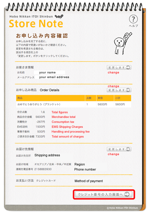 9. You can confirm your order details. Please click the button marked in red to proceed to the next screen.