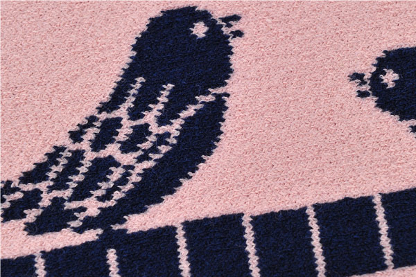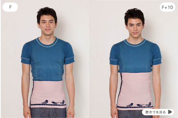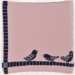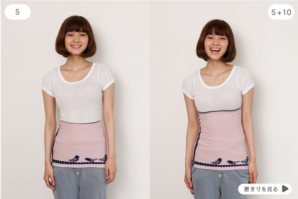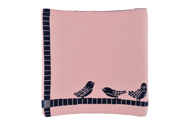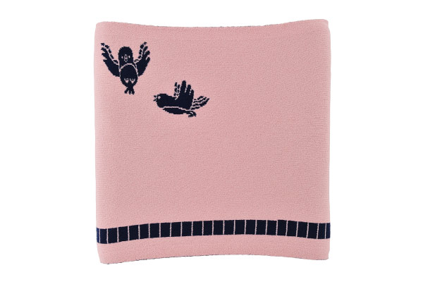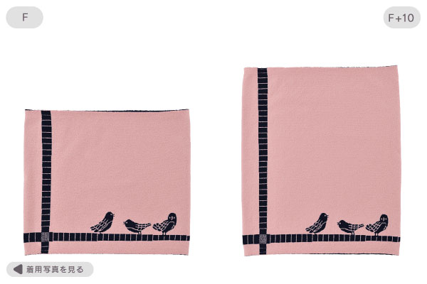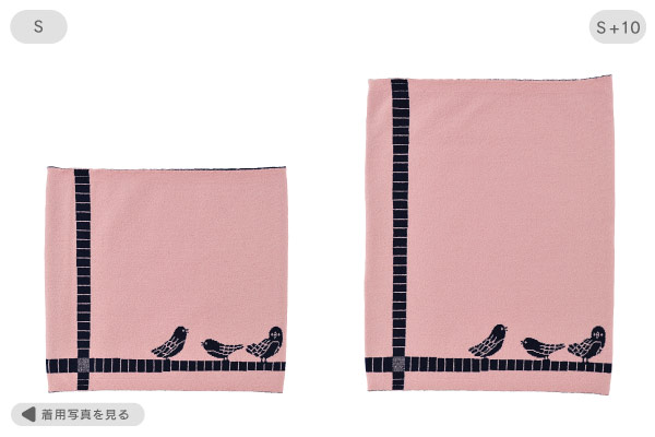 庭先によく来る鳥が、 テーブルで休憩したり、遊んだり。 そんな様子をハラマキにしました。 裏返して巻いても、かわいい柄なんですよ。 淡くてやさしいピンク色なので、 夏でもさわやかに巻いていただけそうです。