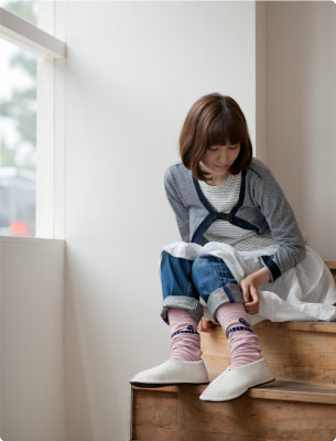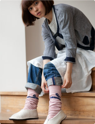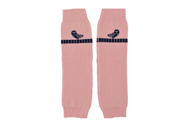 ハラマキの「バードテーブル」とおそろいの レッグウォーマーです。 淡いピンクに、 チャーミングなことりさんが、ちょこんと。 履けばウキウキしそうですね。