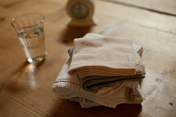 あとはこの、素材感が好きです。 柄がかわいいのもたのしいですけれど、 こういう素材を味わえる感じもいいなあ、と。 シンプルな無地だから、 シーツとかタオルをさわるみたいに、 感触をたのしめますよね。 クマのワンポイントも、いいですよね。 かわいい。 かわいくて、あたたかい。 ‥‥洗濯しているあいだ、 ちょっと寂しくなっちゃうんですよ(笑)。