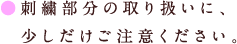 - ワンポイントの刺繍をしてある部分は、