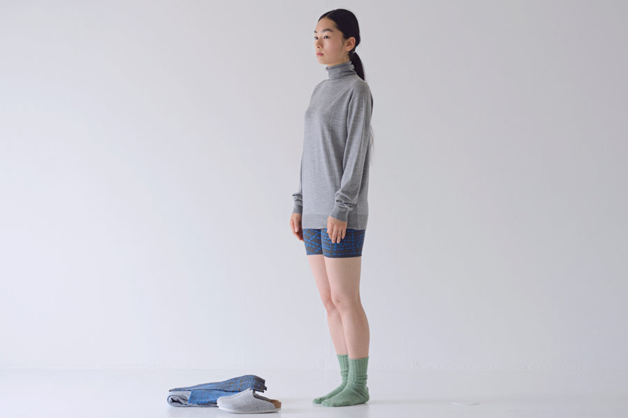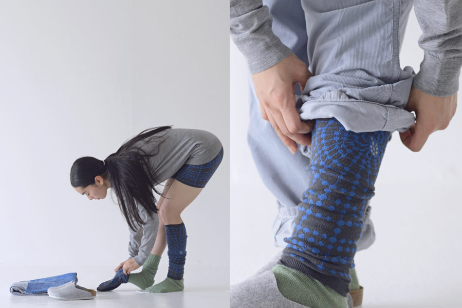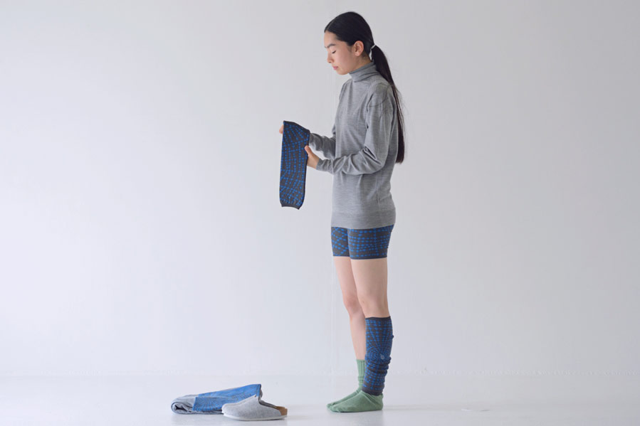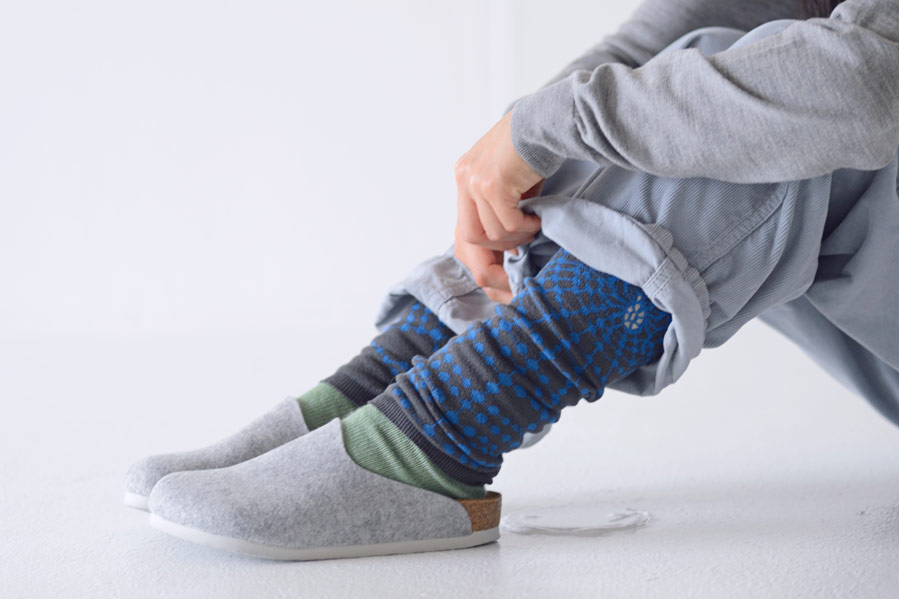 濃いグレー色のレッグウォーマーなので、 ふだん着として使いやすいのではないでしょうか。 ブーツから少し見せたりしても、かっこいいですね。 ときどき気分を変えて、 裏返しで履いていただくのもオススメです。