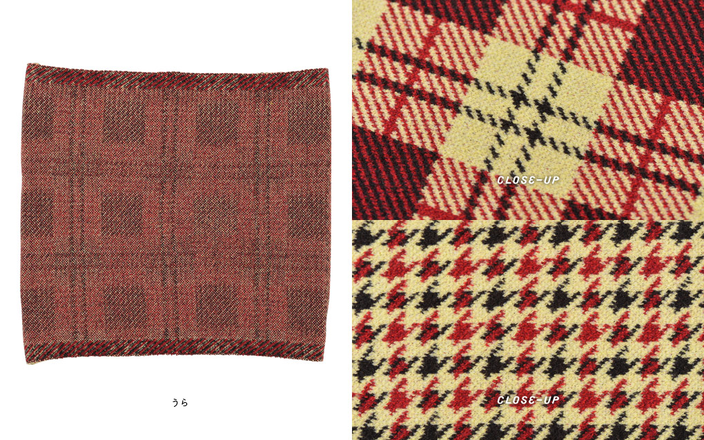おいしそうな、秋っぽい色合いのハラマキです。 柄はチェックの面と、千鳥格子の面なので 1枚で、2柄分たのしめます。 その日の気分によって、 まえうしろを巻き替えて、たのしんでいただけます。 ※マルチカラーチェックシリーズは、 従来のハラマキのように、 リバーシブルになっていません。 裏面は裏面らしい模様になっていますので ご了承くださいませ。