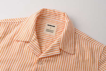 ゆったりとしたシルエットのオープンカラーシャツと、