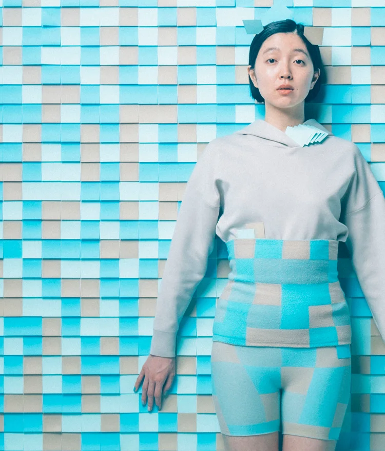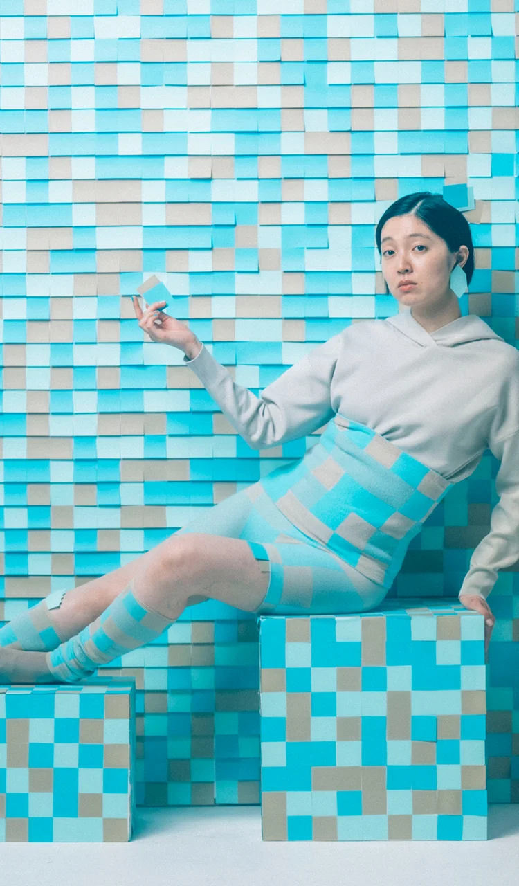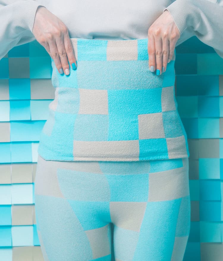 販売ページへ透明感のある水色と、淡いグレーが、 リズミカルな市松模様をつくりだします。 冬の空気のような清涼感のあるデザインで、 すっきりとした印象。 やわらかく、やさしくお腹をつつみますよ。