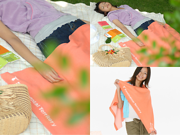 | やさしいオレンジ色の、無地に近いブランケットに、 センチメンタルテリトリーの シンボル的存在のひよこと、 「Sentimental Territory」の文字をのせました。 このブランケットに身をつつみながら、 目を閉じて、 涙を浮かべたひよこを思います‥‥ すると、「センチメンタルテリトリー」が、 こころのなかに出現しますよ。 |