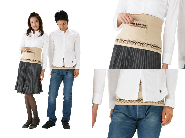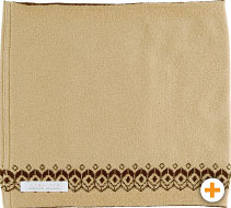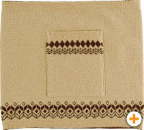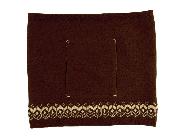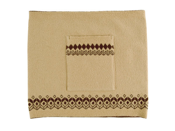 あたたかみのあるキャメル色のハラマキです。 ポケットと縁にフォークロア柄がついているので 柄を活用して「見せハラマキ」としても、 使えるデザインです。 ポケットには、 ちょびっとの何かを入れてみるのもいいですよ。
