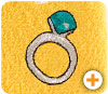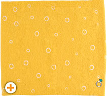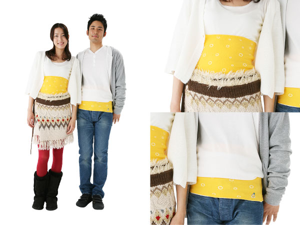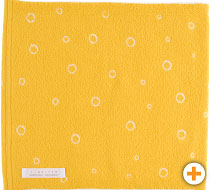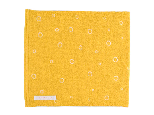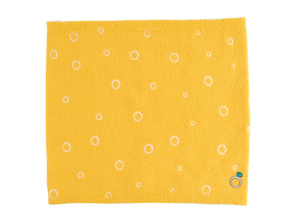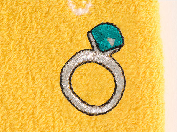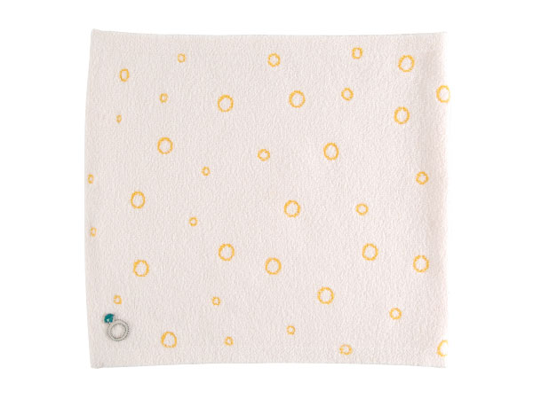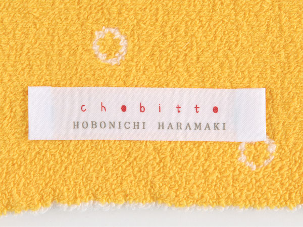 さし色として使える元気なビタミンカラーなイエローに、 白い輪っかのドット柄。 とてもキュートなハラマキです。 その中に、エメラルドのゆびわの “ちょびっと刺繍”をつけました。 洋服のすそから少し見えた時、 腰元にゆびわが「キラリ!」とします。