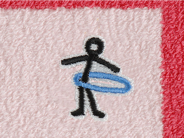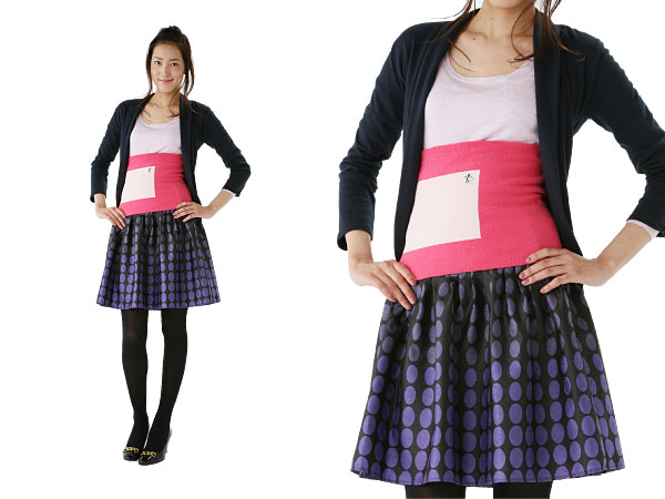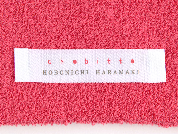 思いきったあざやかっ!なピンク色と、 淡いピンクのツートンです。 巻くだけで気持ちがぱっと明るくなるような色合いです。 その中に“ちょびっと刺繍”の 「フラフープさん」がいます。 腰の回転がとくいな「フラフープさん」がいつでも、 あなたのお腹をあたためてくれることでしょう。
