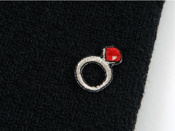 “ちょびっと刺繍”でルビーのゆびわをつけました。