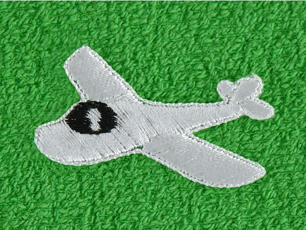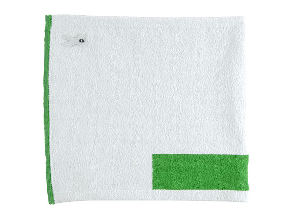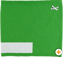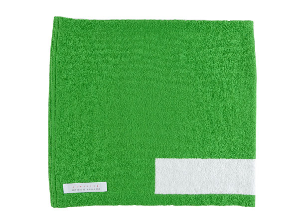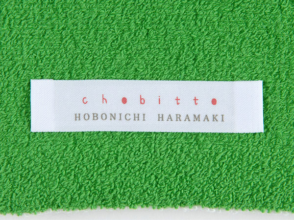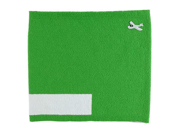 あざやかな緑と、白のツートン。 そこに、ワンポイントの刺繍の飛行機がちょびっと。 まるで、芝生の中のアスファルトの 滑走路にいまから着陸するかのようです。 あざやかな緑なので、「見せハラマキ」として 服のすそから、ちょびっと見せても、かっこいいです。 裏返せば、白地になるので、これも、巻きやすいと思います。 刺繍のデザインは、「ほぼ日ウォ〜マーズ」のイラストや、 「やさしいタオル」の「すしをめくる人」のワンポイントでもおなじみの 大槻あかねさん作です。