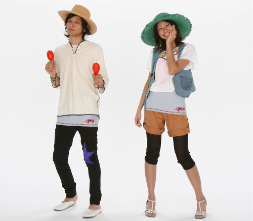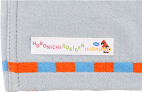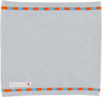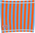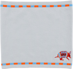 薄い青みがかったグレーに、南の国っぽい 明るいオレンジと水色の 2色のストライプのライン。 隅には、色とりどりな 南の国のアルマジロがいます! とっても元気な1枚ですね。 男女問わず巻いていただけるデザインです。