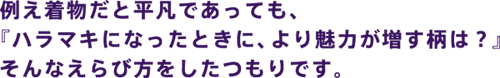 着物としても魅力的な柄を、